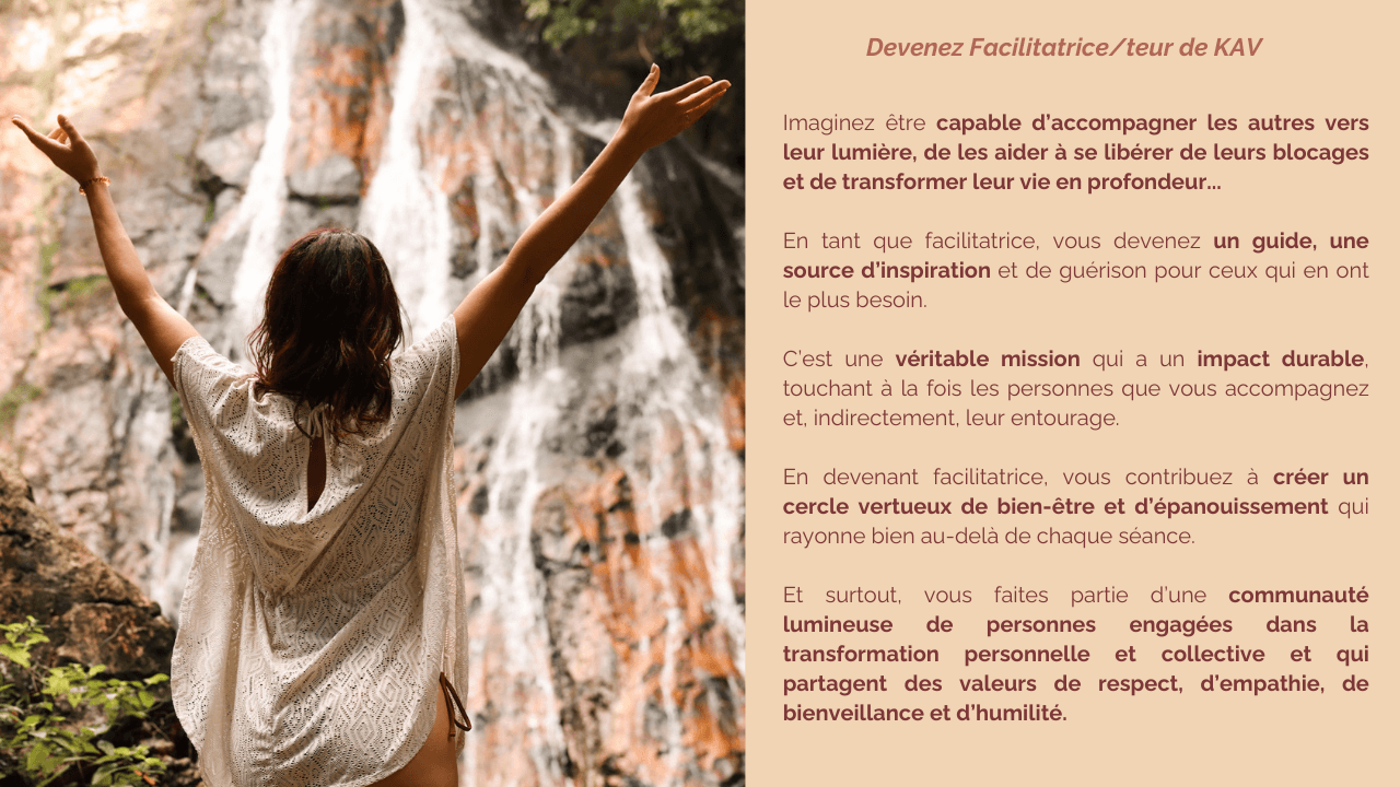 Devenir facilitatrice de KAV, c’est un engagement envers vous-même et ceux que vous accompagnerez. Êtes-vous prêt(e à franchir le pas ?